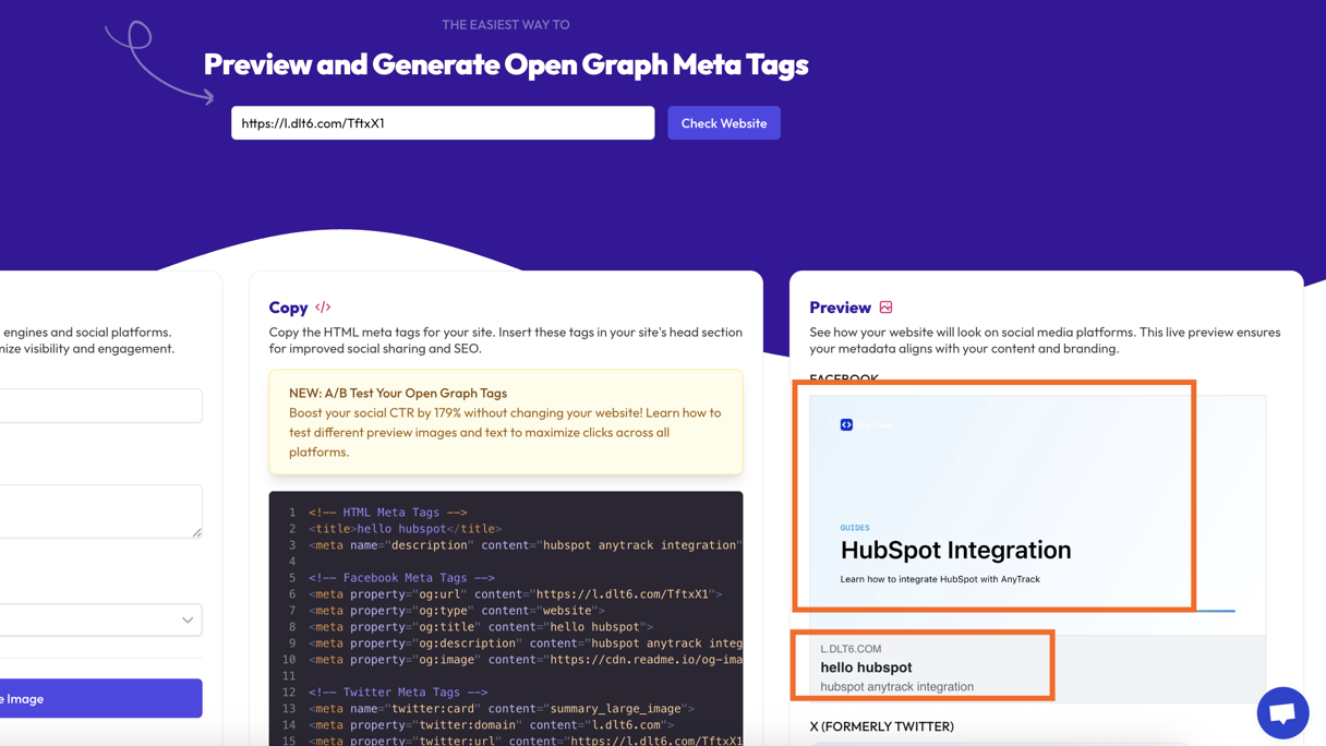 Short URL optionYou can use your own short URL service, but our provided short URL lets you configure Open Graph tags (the preview content that displays on social media).