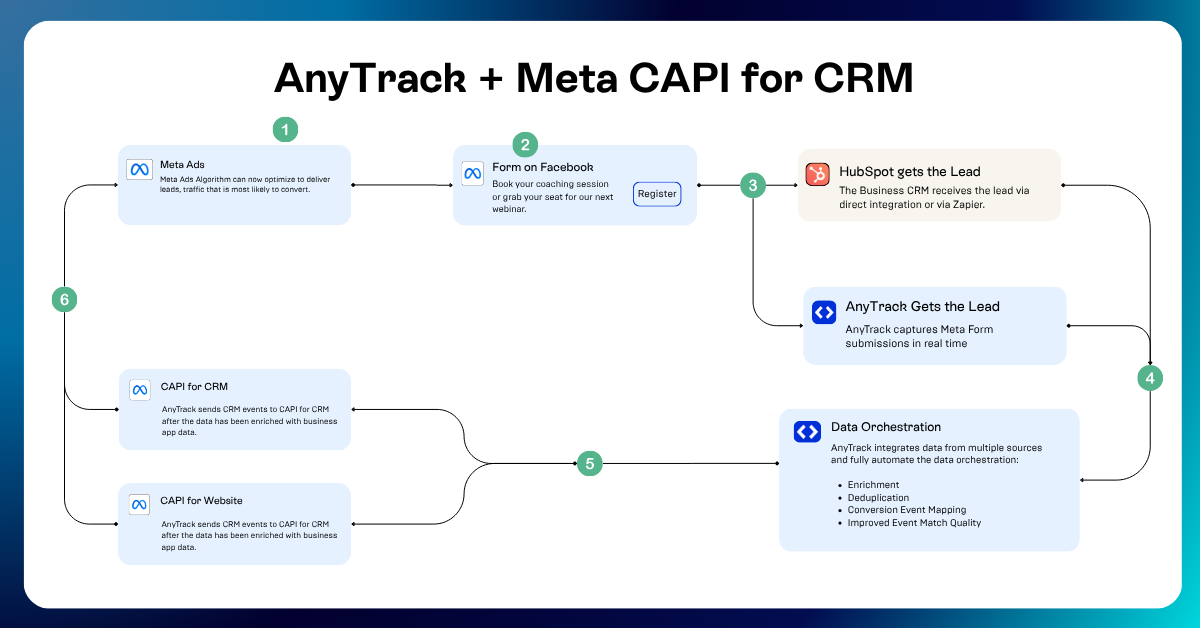AnyTrack bridges this gap by orchestrating data between Facebook Lead Ads and your CRM systems, creating a complete attribution loop that benefits both your reporting and Facebook's optimization algorithms.
