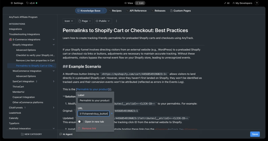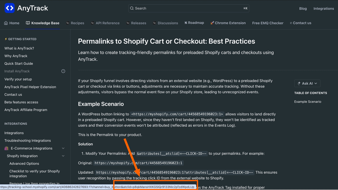 section of the website where you added the permalink, and the Shopify integration has been set in your AnyTrack account.