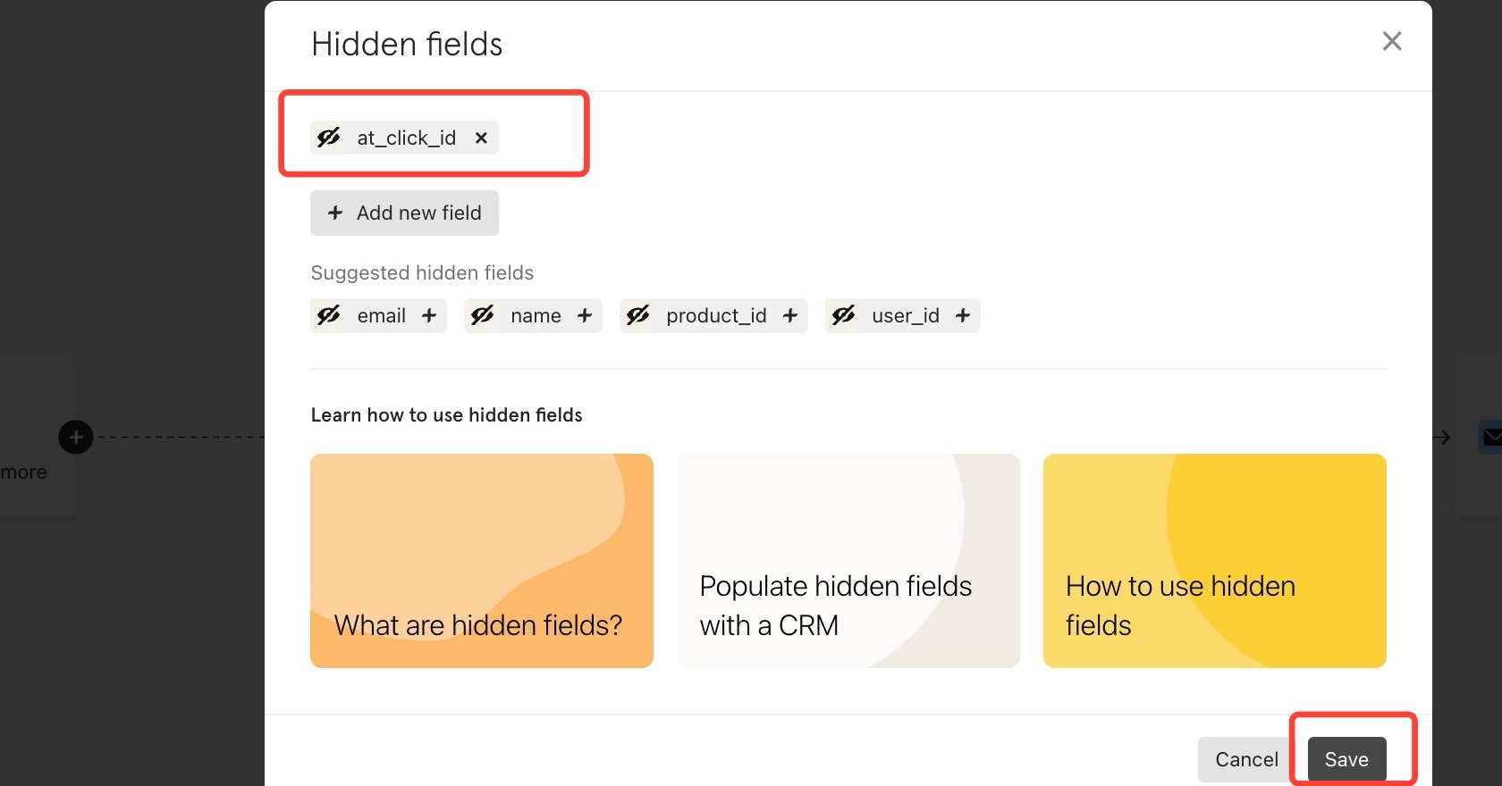 at_click_idhidden field is properly added to your Typeform - Webhook Configuration: Verify the webhook URL is correctly configured and active in your Typeform settings