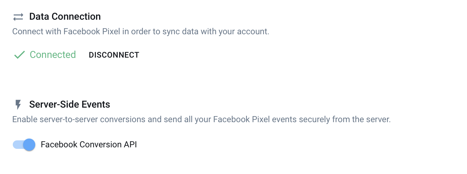 All our pixels support server-side tracking and should be enabled for all pixels. Server-side events are events that are generated on the server and not within the user session. This includes almost all conversion events from our integrations so you must enable Server-Side events to receive conversions on your ad network.